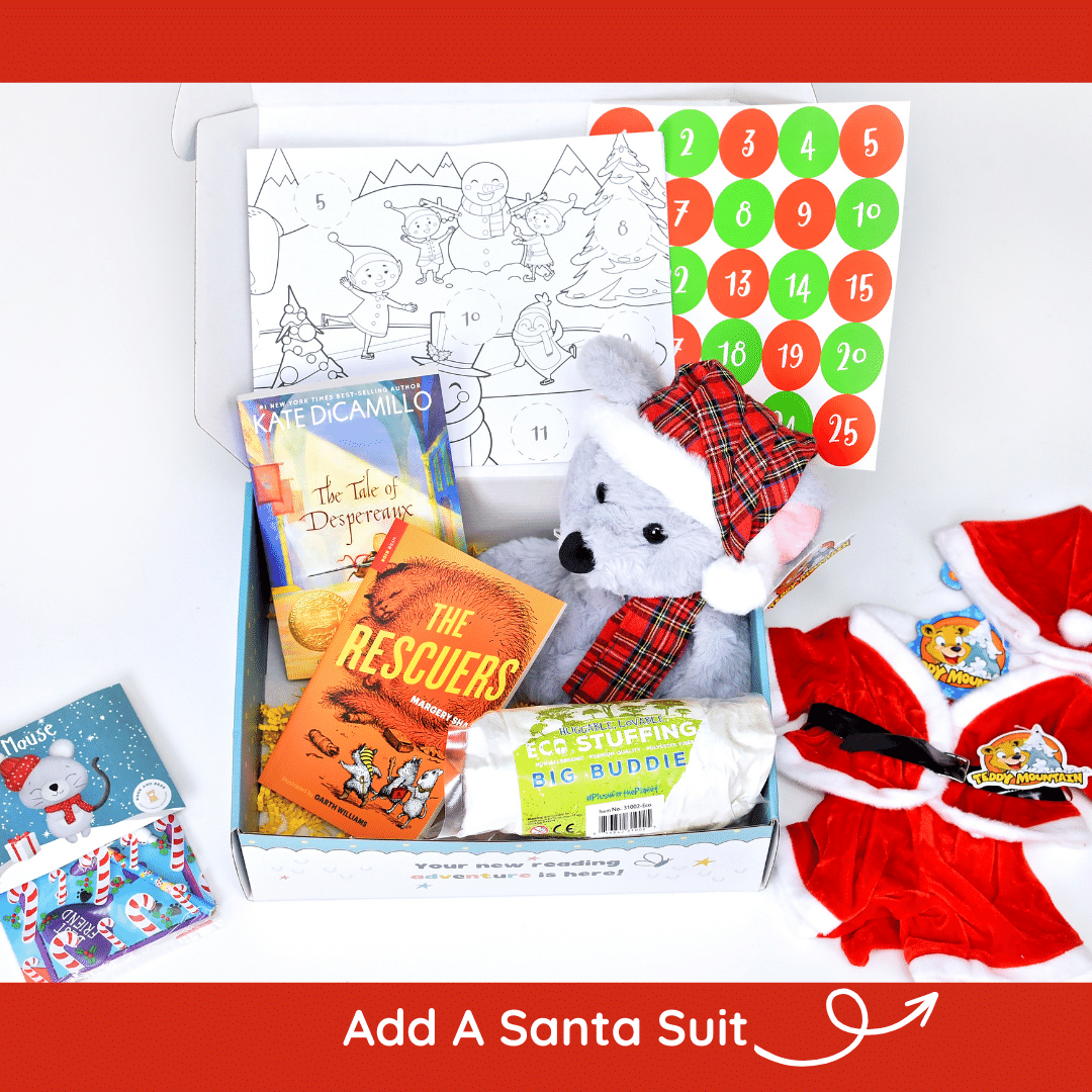Chapter Book version includes two chapter books: Newberry Medal Winner, The Tale of Despereaux and the classic novel, The Rescuers (both books are favorites of Book and Bear Co-founders Kymberly and Brae!)